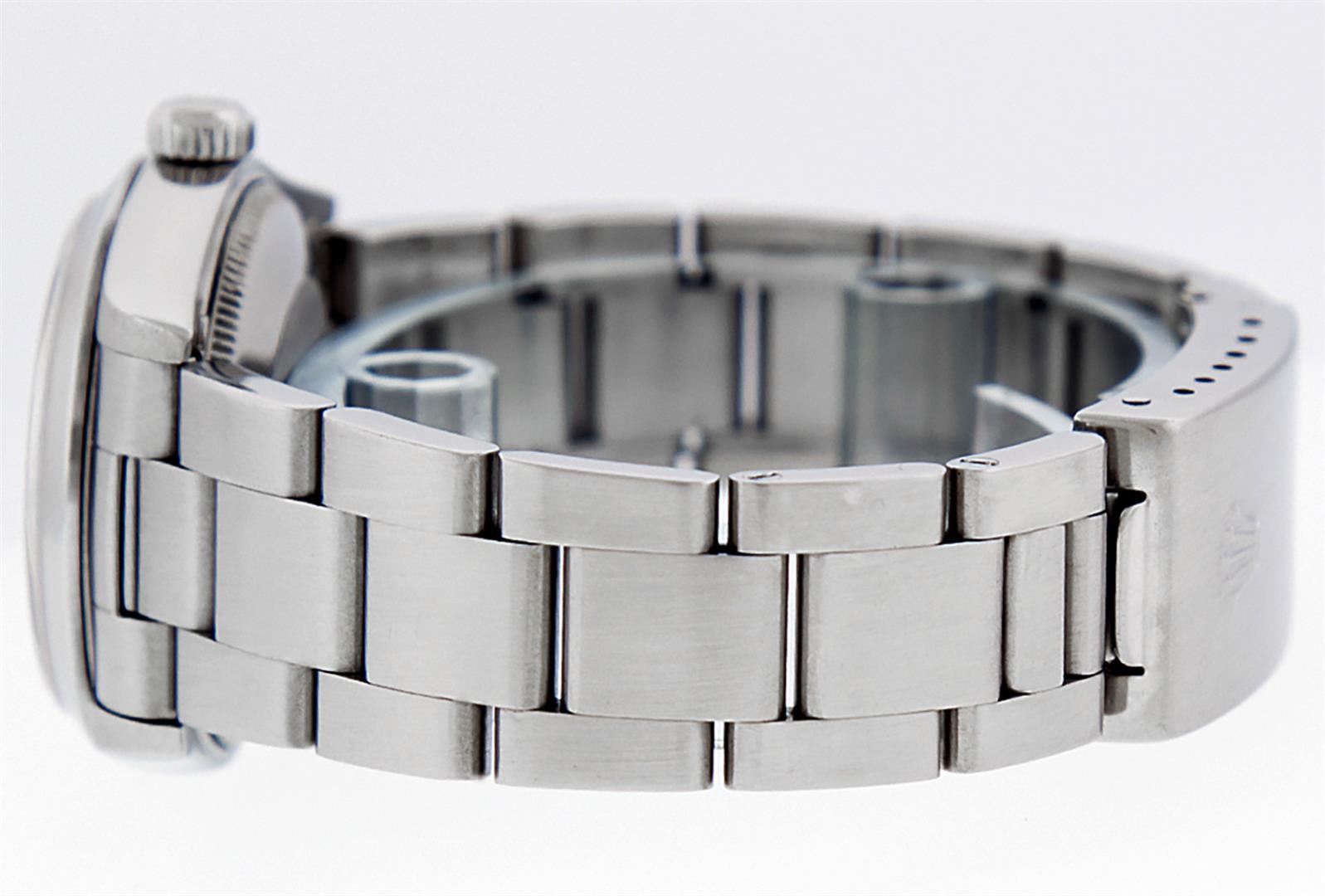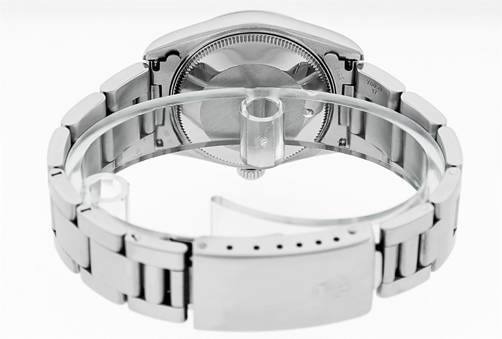 One Women's Pre Owned Midsize Stainless Steel Rolex Datejust Polished, Serviced & Electronically Tested, Rolex Stainless Steel case : 31mm, Rolex Stainless Steel Crown, Rolex Bezel: Stainless Steel Smooth Bezel, Crystal: Sapphire Cyclops Lens. Hands: Solid Hands. Rolex Movement: Automatic Winding Movement Caliber 2135. Rolex Dial: Salmon Roman Dial With Square Track. Date Window: 3 O'Clock Position Date Display, Quickset, Model: Midsize Datejust. Condition: G-6 Extra Fine. Rolex Bracelet: Stainless Steel Oyster Band. Bright Polish. 6.0 Inch Length, Adjustable. Standard Clasp, With Rolex Logo. This Watch Has Been Serviced Time Tested And Is In Excellent Condition It Is Free Of All Scratches And Dents.