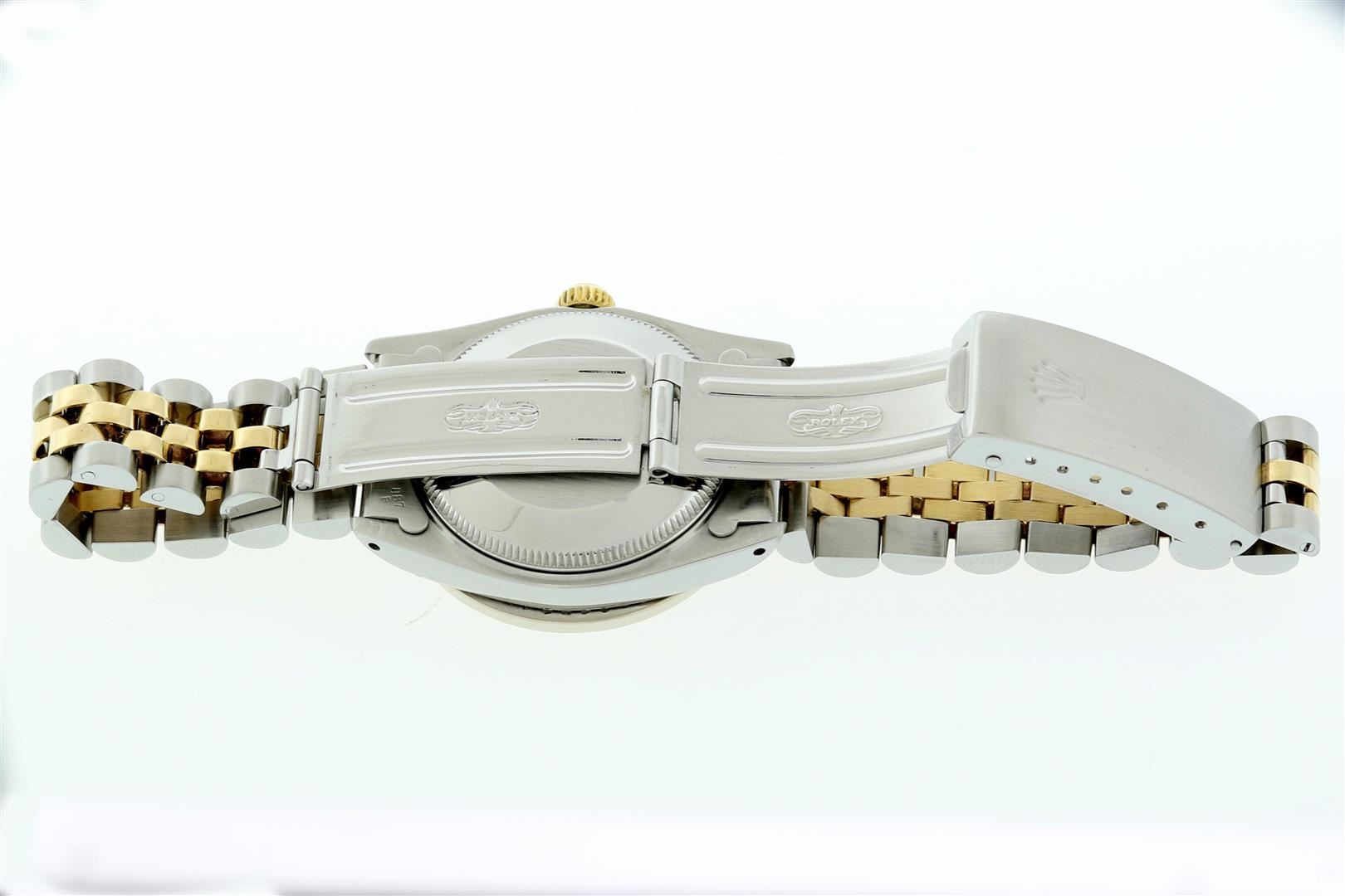 One Women's Midsize Stainless Steel and Yellow Gold Rolex Datejust Polished, Serviced & Electronically Tested, Rolex Stainless Steel case: 31mm, Rolex Yellow Crown, Custom Bezel: New White Gold Channel Set Diamond Bezel, Color: G To H, Clarity: VS2-SI1. Custom Crystal: New Sapphire with Date Window. Custom Hands: Luminescent Hands. Rolex Movement: Automatic Winding Movement Caliber 2135. Custom Dial: Champagne with Custom Added Diamonds, Color: G To H, Clarity: SI-VS. Date Window: 3 O'Clock Position Date Display, Quickset, Model: Midsize Datejust. Condition: G-6 Extra Fine. Rolex Bracelet: Stainless Steel and Yellow Gold Jubilee Band. Bright Polish. 6.0 Inch Length, Adjustable. Standard Clasp, with Rolex Logo. This Pre Owned Watch Has Been Serviced Time Tested And Is In Excellent Condition It Is Free Of All Scratches And Dents.