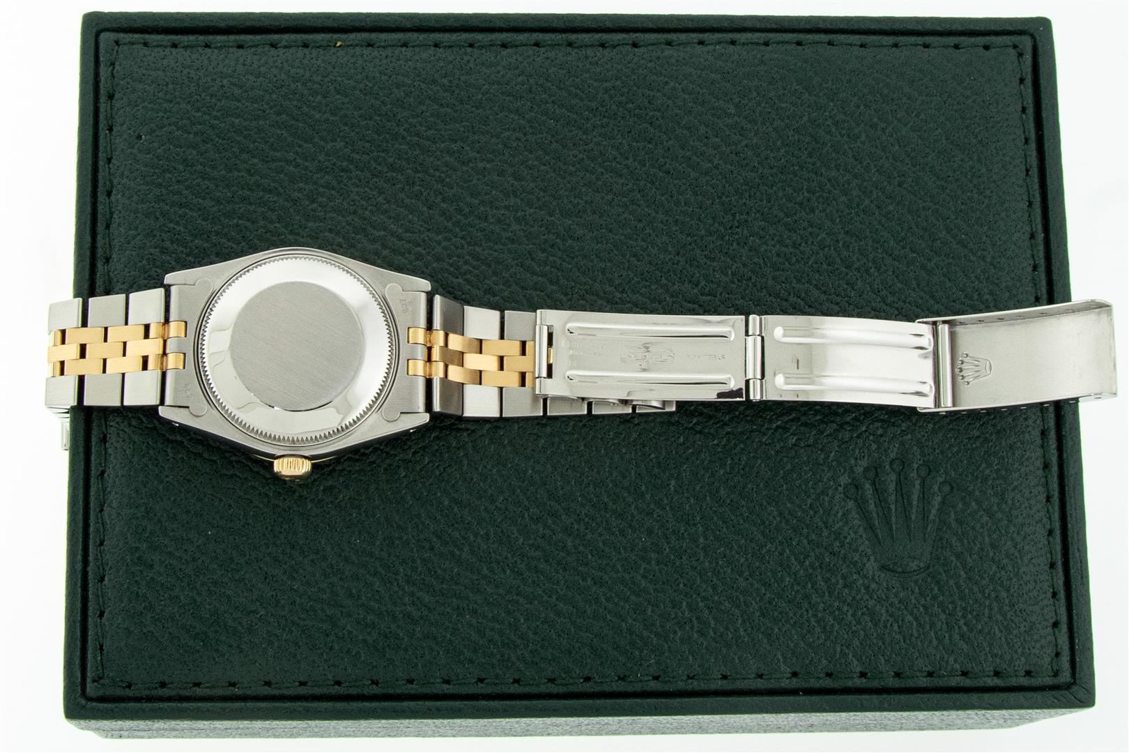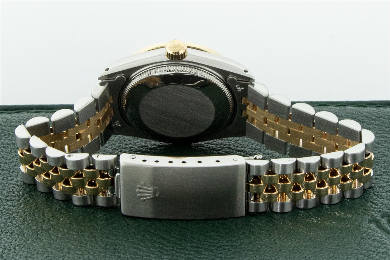 One Women's Midsize Stainless Steel and Yellow Gold Rolex Datejust Polished, Serviced & Electronically Tested, Stainless Steel case: 31mm, Stainless Steel Crown, Custom Bezel: New 18K Yellow Gold Sapphire Beadset Diamond Bezel, Diamond Count: 40 Diamonds + 4 Sapphires On Bezel, Color: G To H, Clarity: VS2-SI1. Custom Crystal: New Sapphire with Date Window. Custom Hands: New Luminescent Hands. Rolex Movement: Automatic Winding Movement Caliber 2235. Custom Dial: MOP Sapphire Dial. Stone Count: 10 Round Sapphire On Dial; Date Window: 3 O'Clock Position Date Display, Quickset, Model: Midsize Datejust. Condition: G-6 Extra Fine. Rolex Bracelet: Stainless Steel and Yellow Gold Jubilee Band. Bright Polish. 6.0 Inch Length, Adjustable. Standard Clasp, with Rolex Logo. This Watch Has Been Serviced Time Tested And Is In Excellent Condition It Is Free Of All Scratches And Dents.