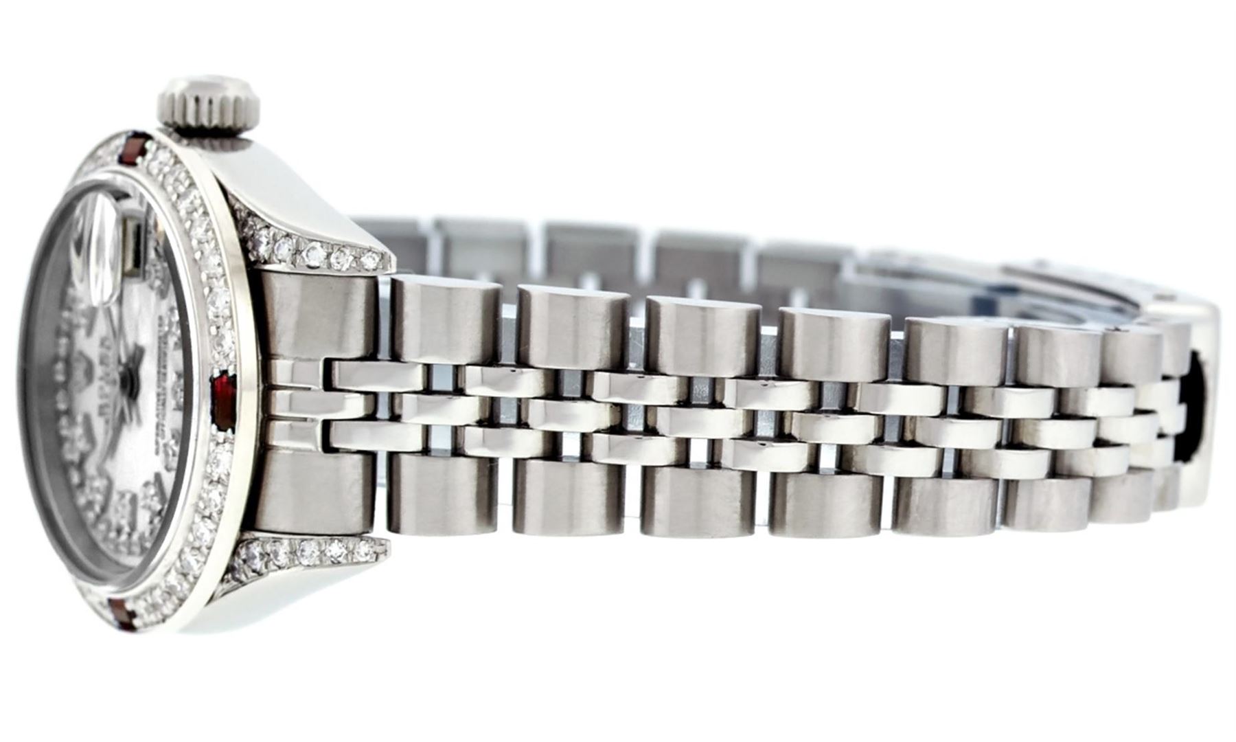 Rolex Stainless Steel Ruby and Diamond Datejust Ladies Wristwatch