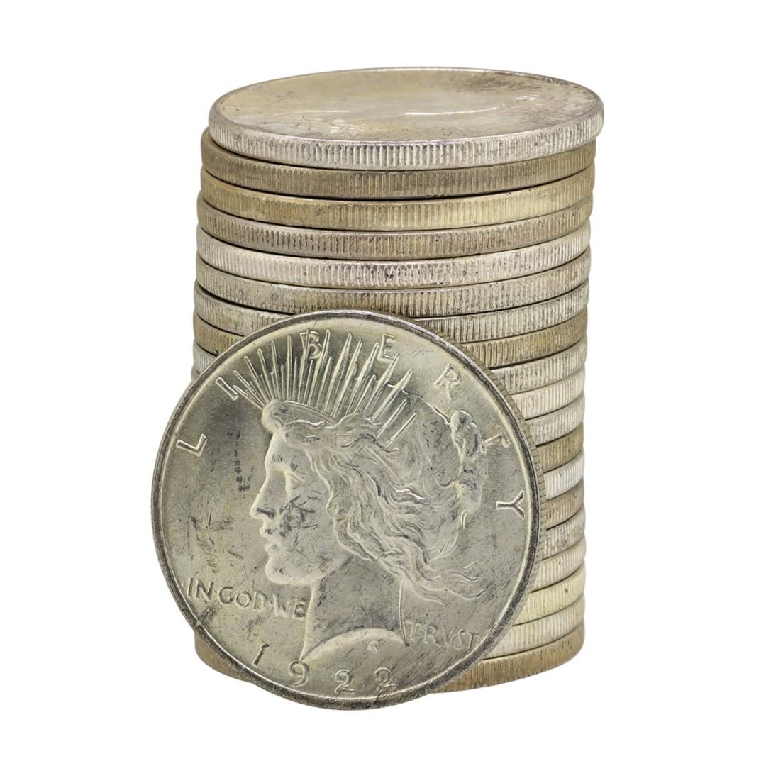 Roll of (20) 1922 $1 Brilliant Uncirculated Peace Silver Dollar Coins