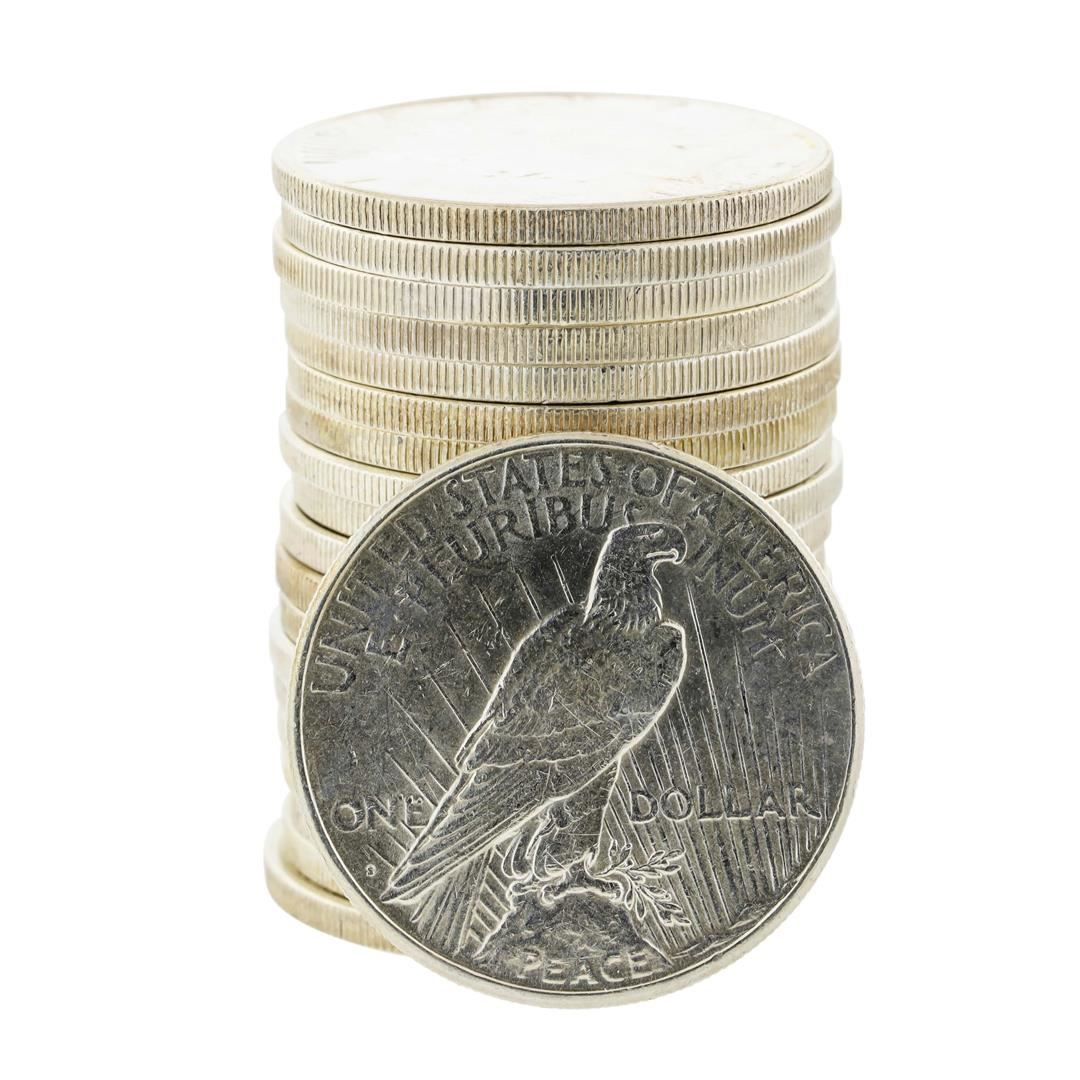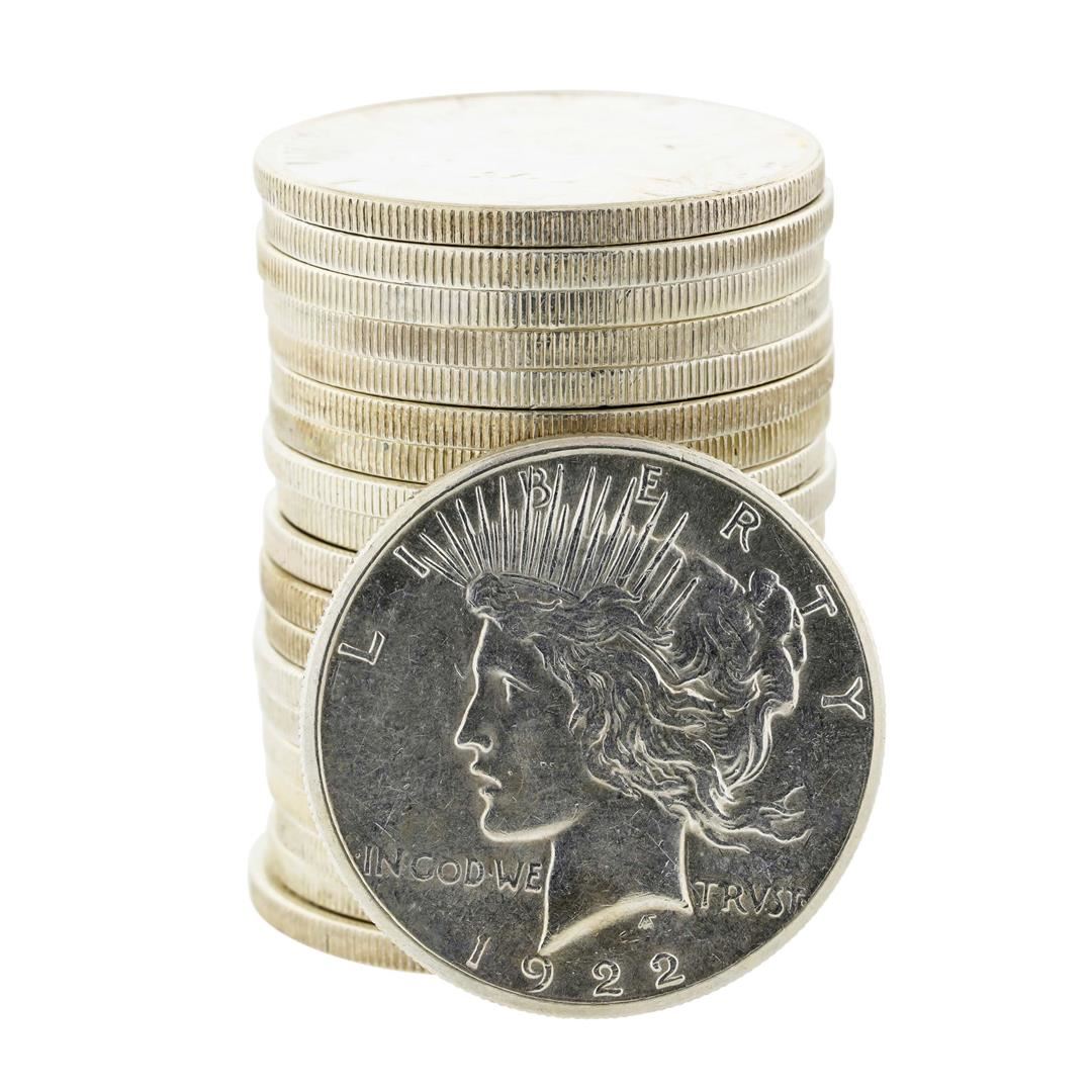 One Roll of (20) 1922-23 $1 Peace Silver Dollar Coins Uncirculated.