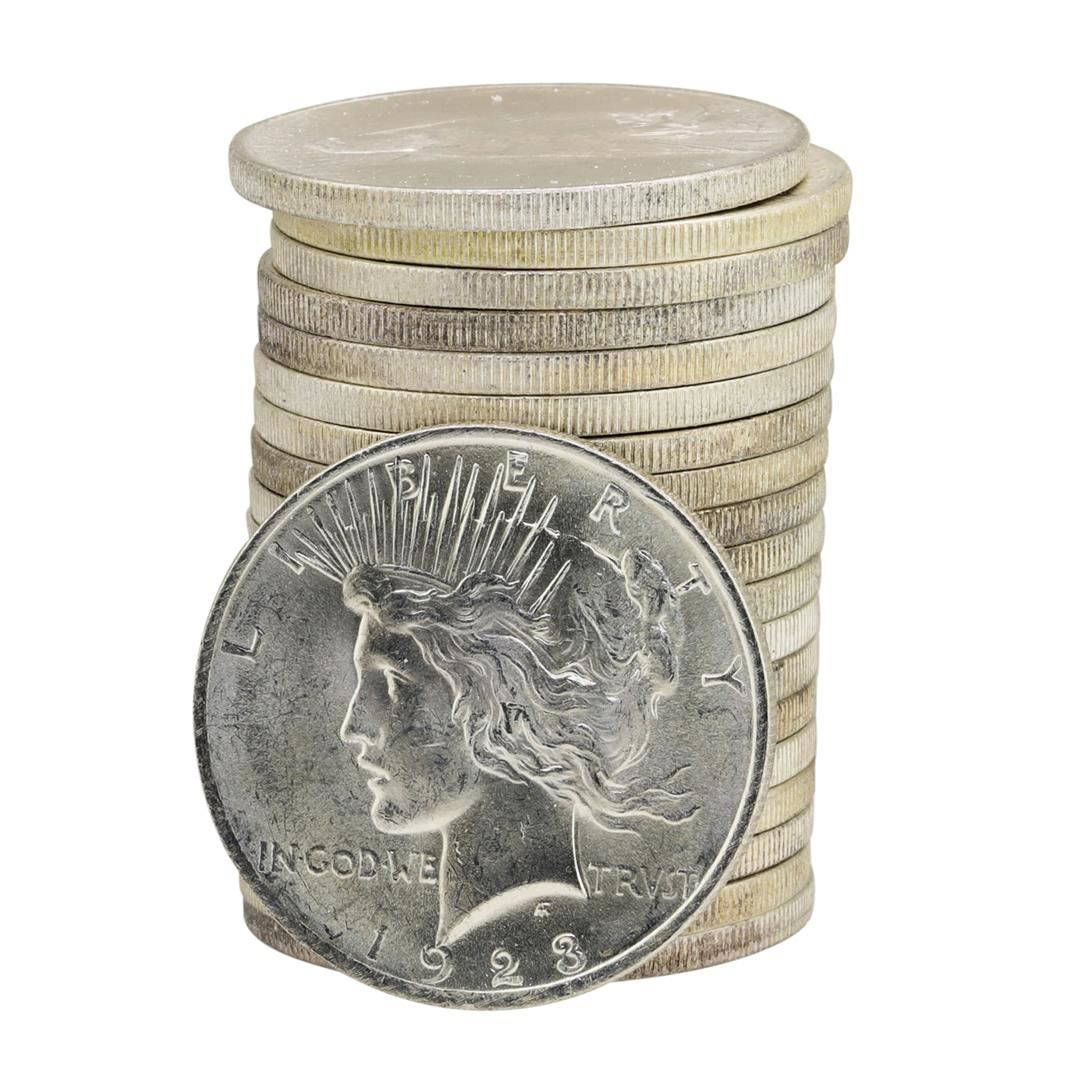 Roll of (20) 1923 $1 Brilliant Uncirculated Peace Silver Dollar Coins