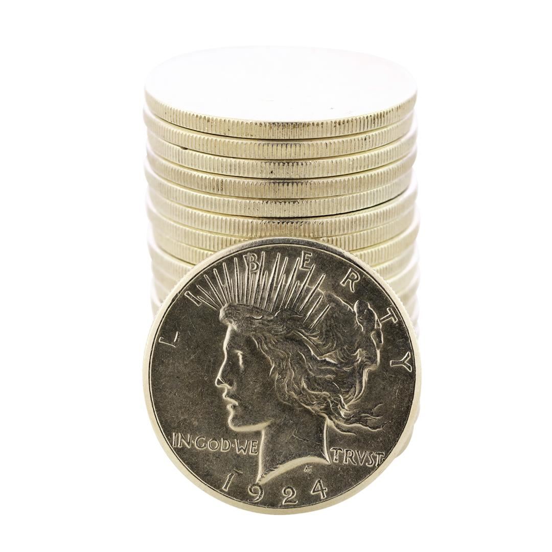 One Roll of (20) 1924-S $1 Peace Silver Dollar Coins.