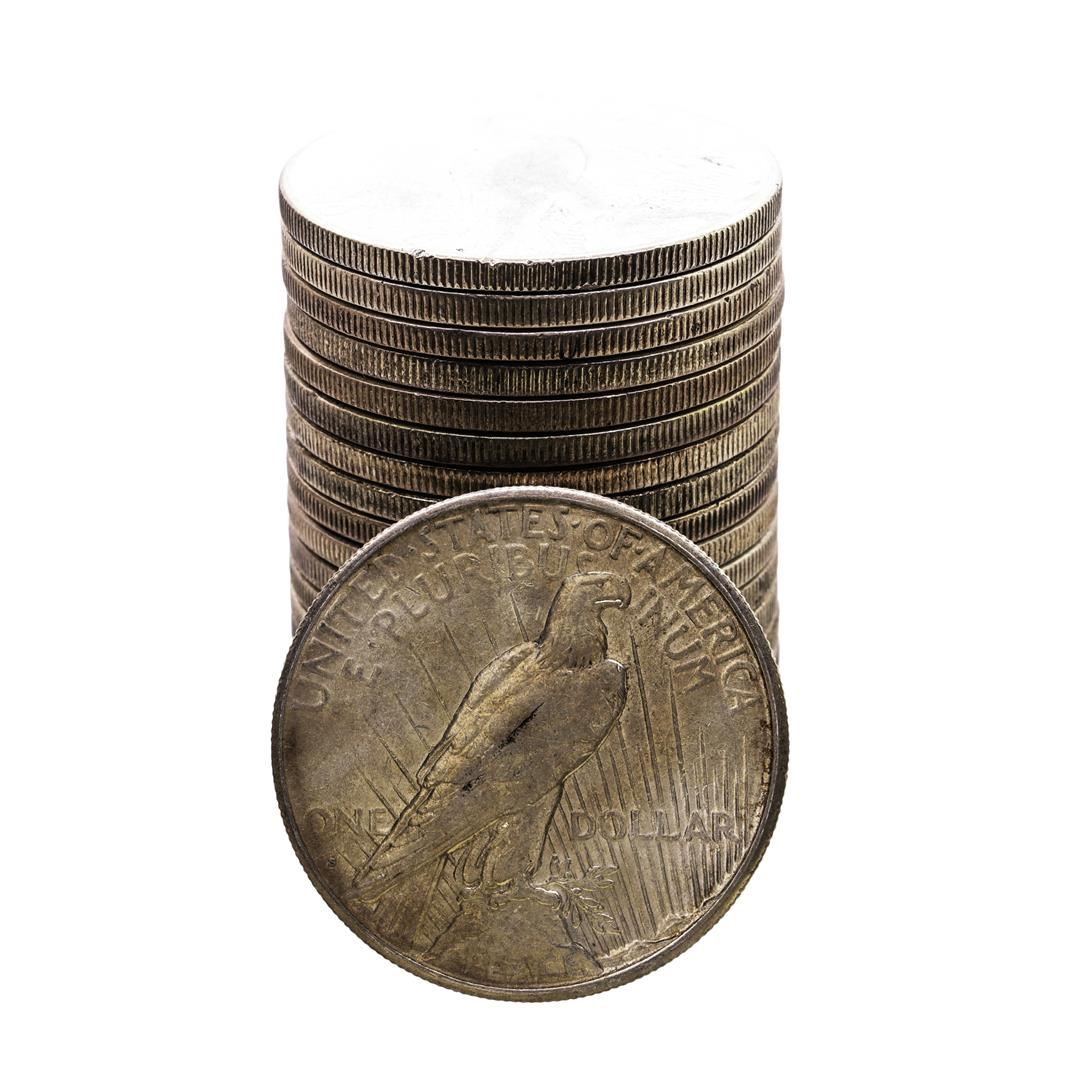 One Roll of (20) 1925-S $1 Peace Silver Dollar Coins Circulated.