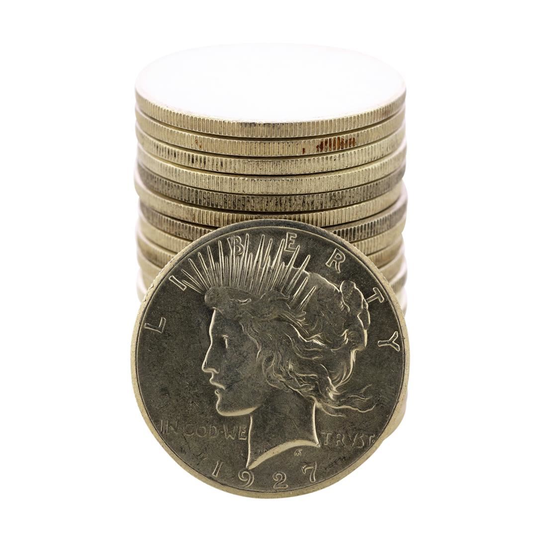 One Roll of (20) 1927 $1 Peace Silver Dollar Coins.