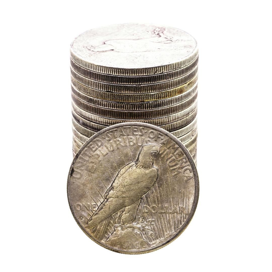 One Roll of (20) 1934-S $1 Peace Silver Dollar Coins Circulated.