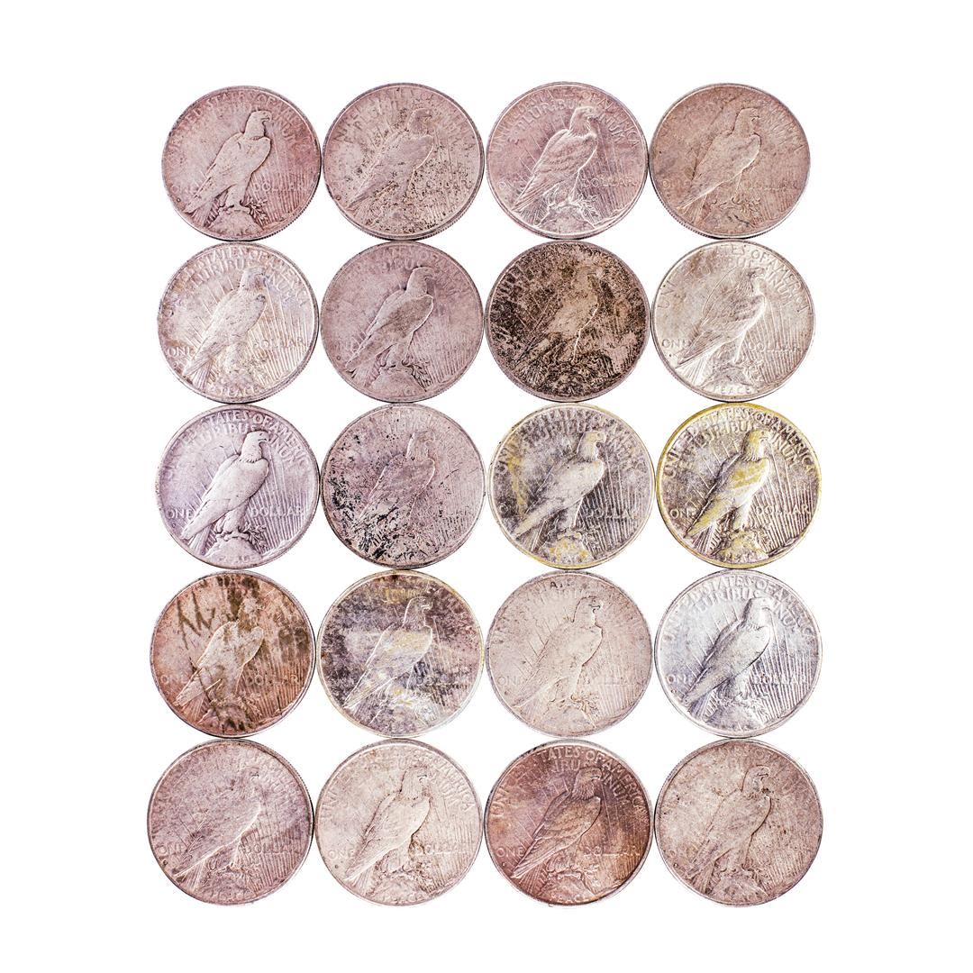 One Roll of (20) 1935-S $1 Peace Silver Dollar Coins Circulated.