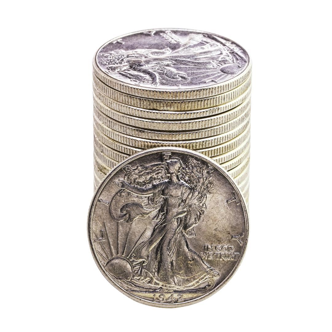 One Roll of (20) 1942-1945 Walking Liberty Half Dollar Coins.