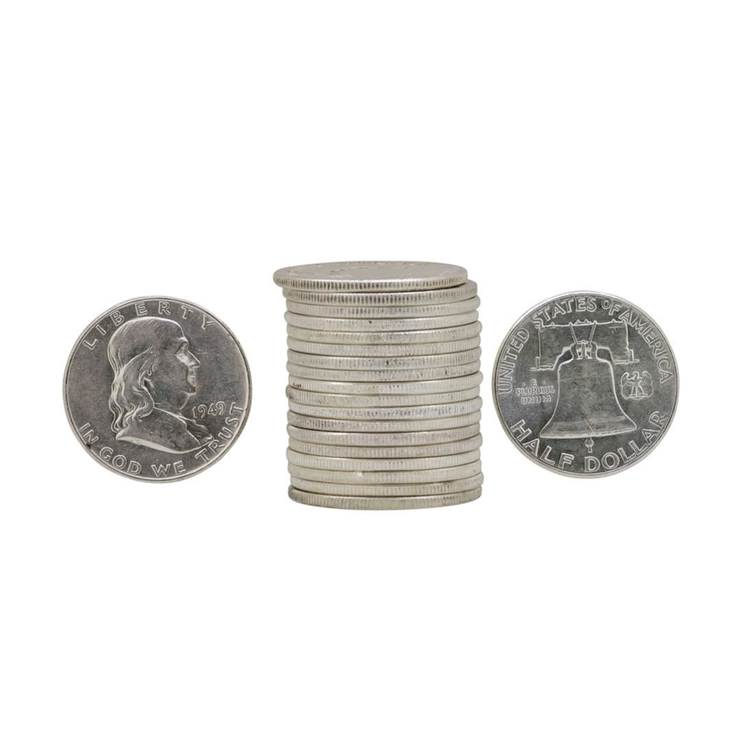 One Roll of (20) 1949 Franklin Half Dollar Coins.