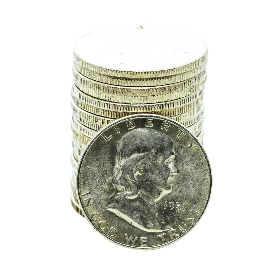 One Roll of (20) 1951-S Franklin Half Dollar Coins.