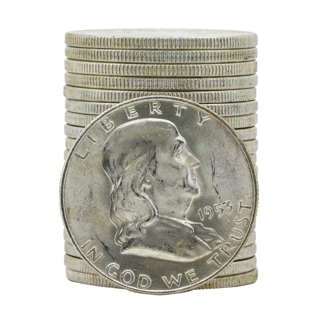 Roll of (20) 1953-D Brilliant Uncirculated Franklin Half Dollar Coins