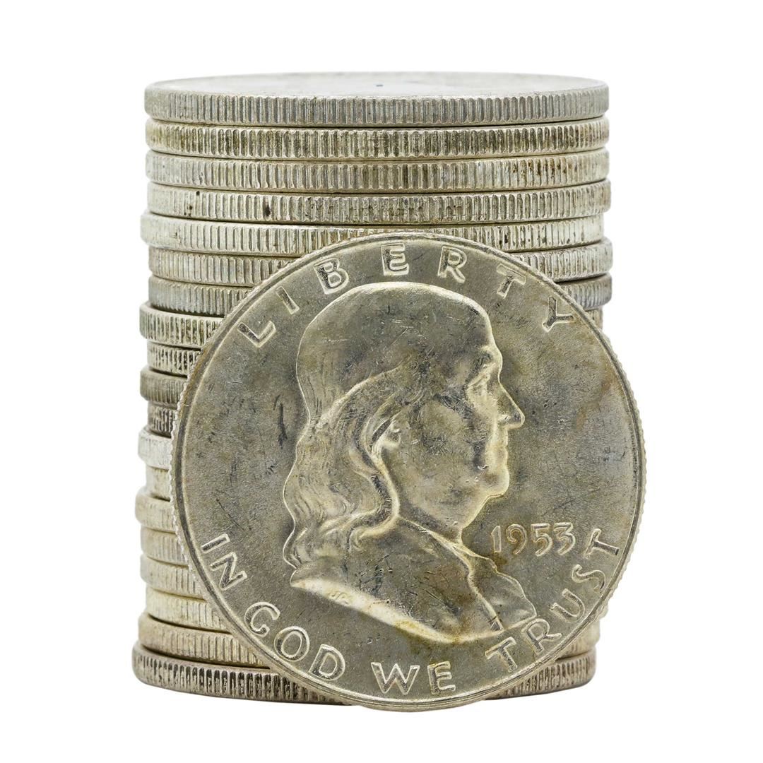 Roll of (20) 1953-D Brilliant Uncirculated Franklin Half Dollar Coins