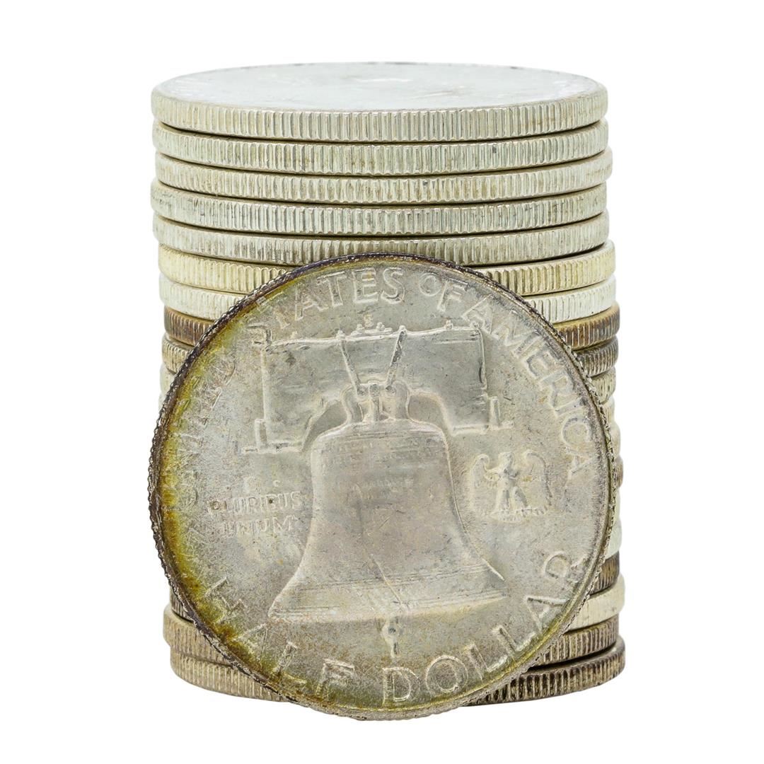 Roll of (20) 1954 Brilliant Uncirculated Franklin Half Dollar Coins