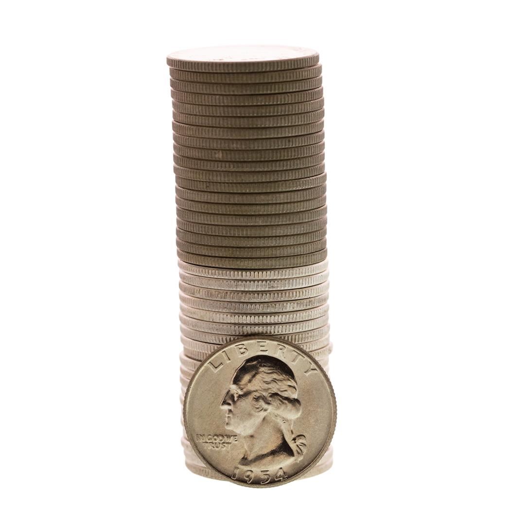 One Roll of (20) 1954-P & (20) 1954-D Brilliant Uncirculated Washington Quarter Coins.