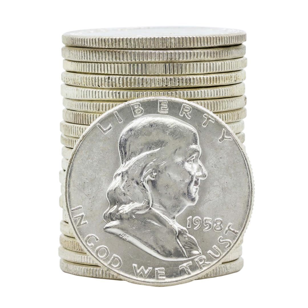 Roll of (20) 1958 Brilliant Uncirculated Franklin Half Dollar Coins
