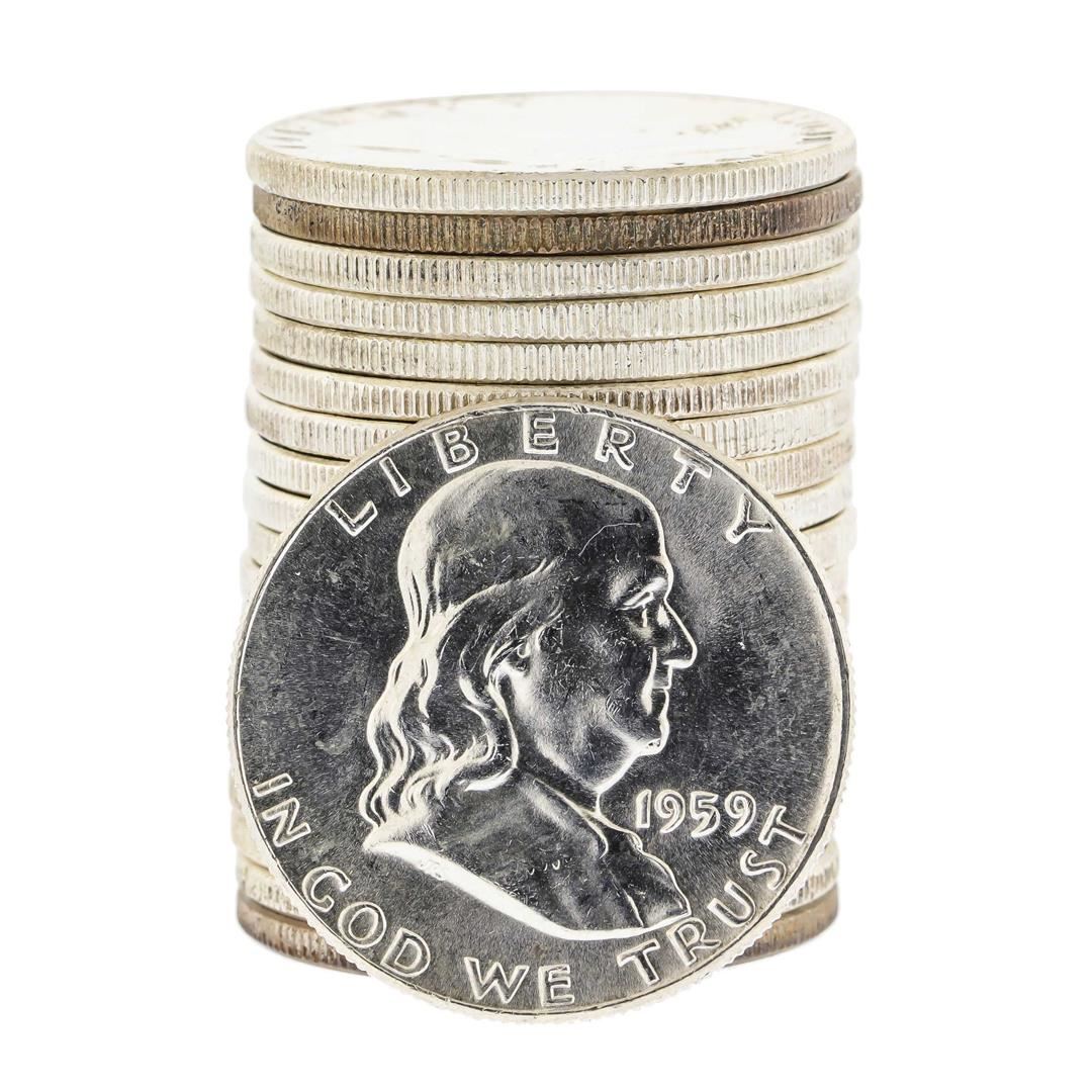 Roll of (20) 1959 Brilliant Uncirculated Franklin Half Dollar Coins