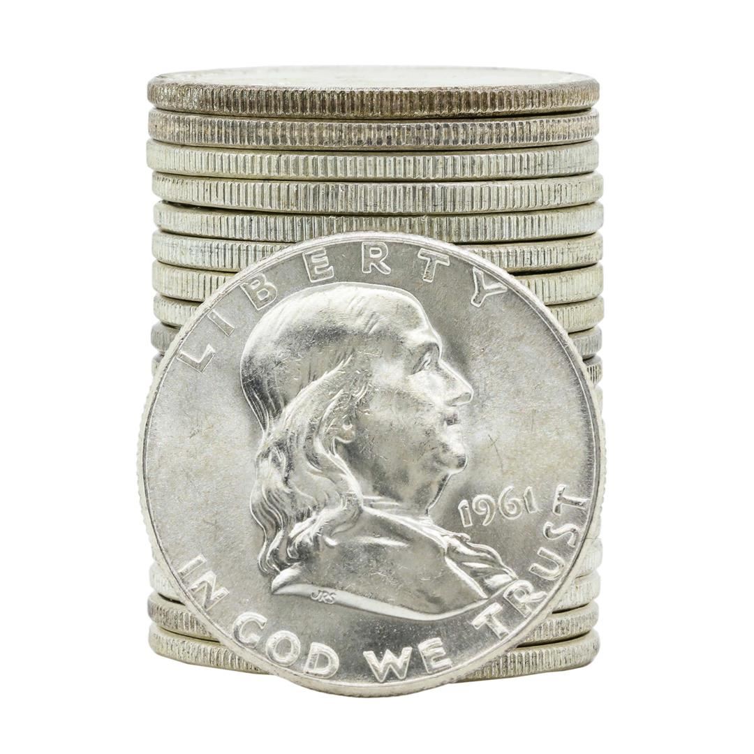 Roll of (20) 1961 Brilliant Uncirculated Franklin Half Dollar Coins