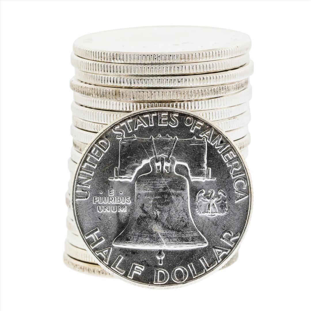 Roll of (20) 1962 Brilliant Uncirculated Franklin Half Dollar Coins