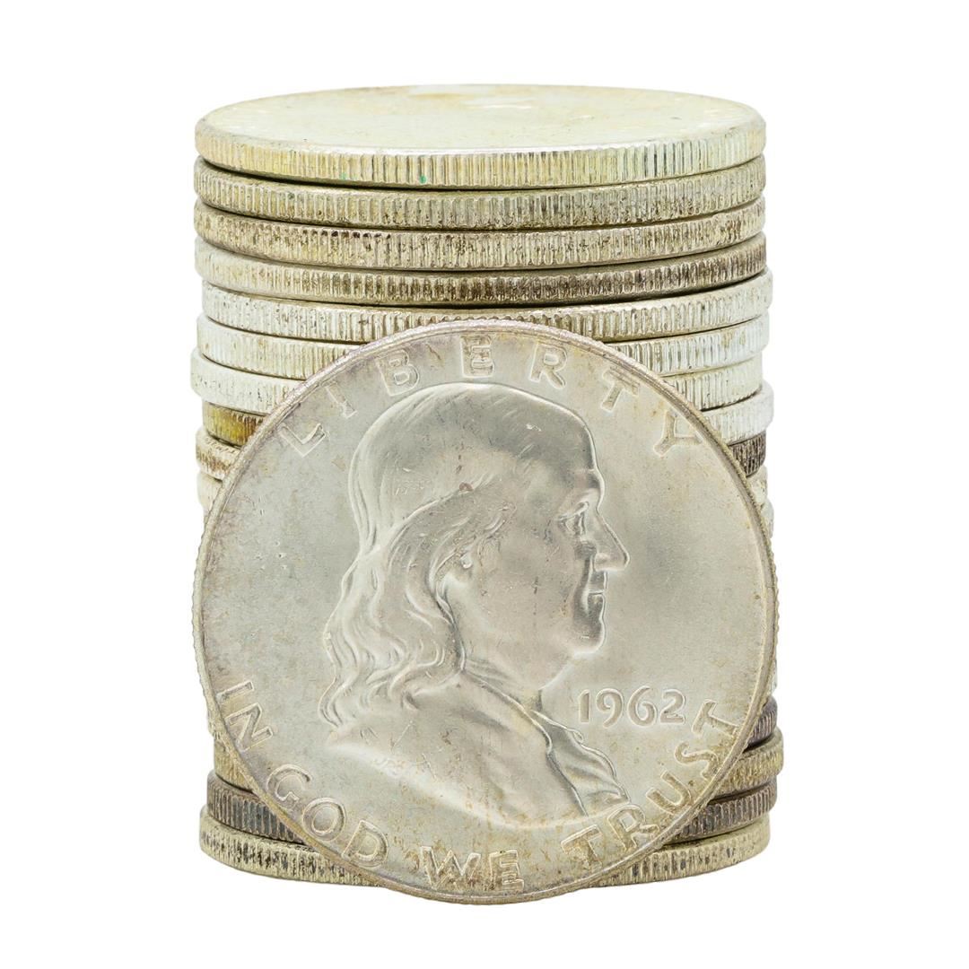 Roll of (20) 1962 Brilliant Uncirculated Franklin Half Dollar Coins