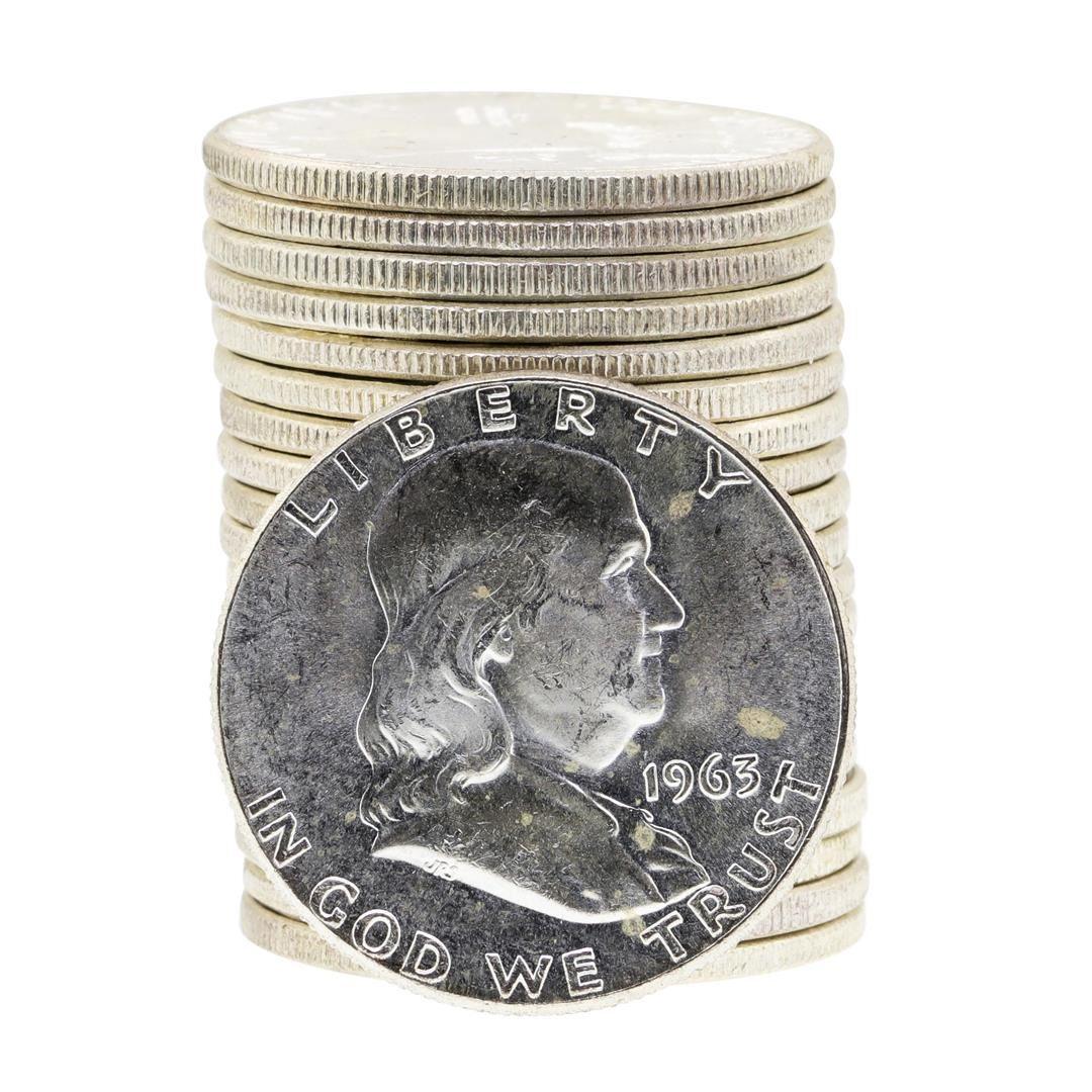 Roll of (20) 1963 Brilliant Uncirculated Franklin Half Dollar Coins