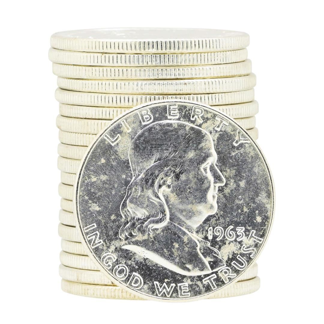 Roll of (20) 1963 Brilliant Uncirculated Franklin Half Dollar Silver Coins