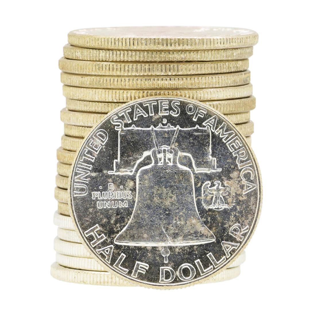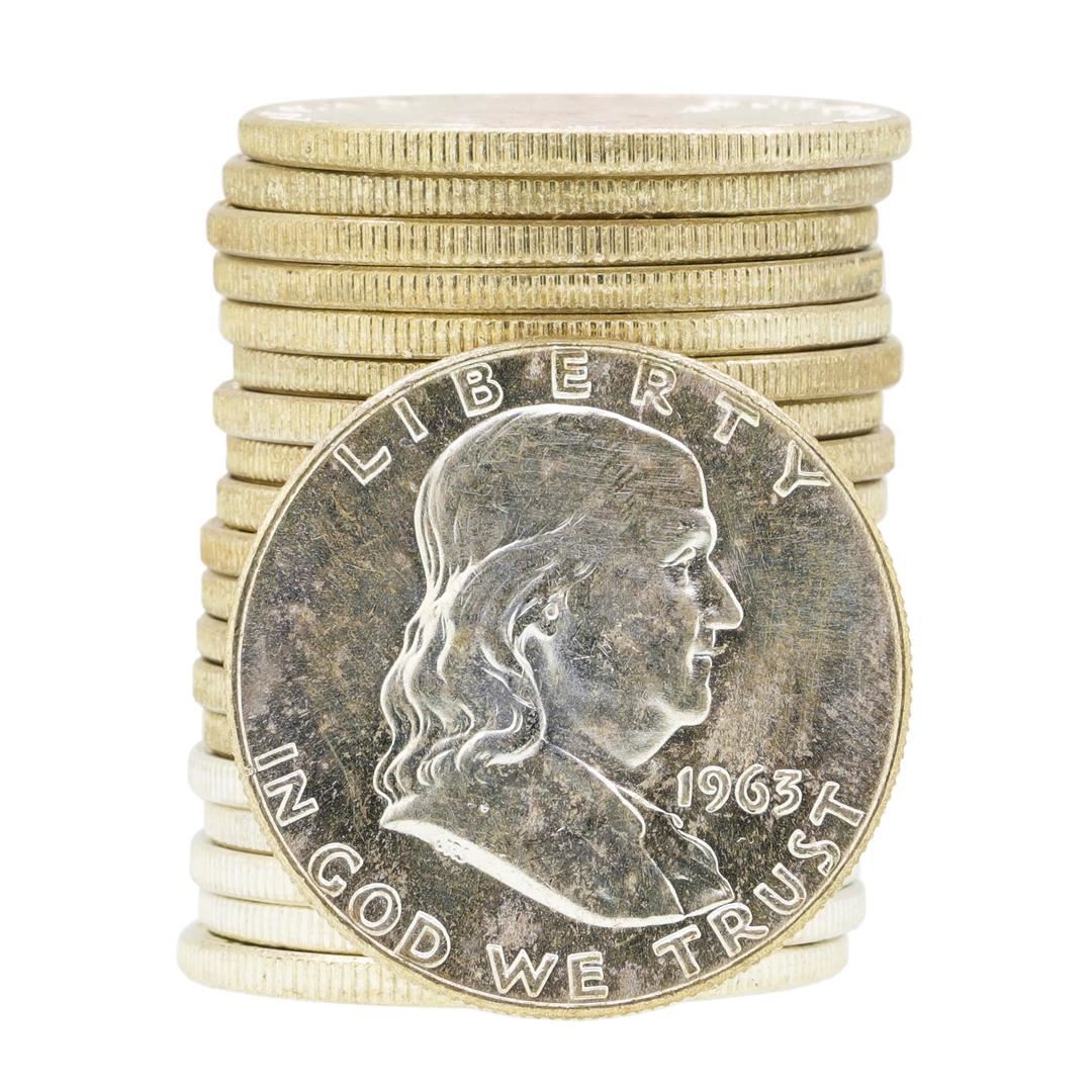 Roll of (20) 1963 Brilliant Uncirculated Franklin Half Dollar Silver Coins