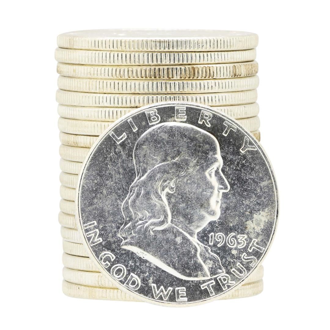 Roll of (20) 1963 Brilliant Uncirculated Franklin Half Dollar Silver Coins