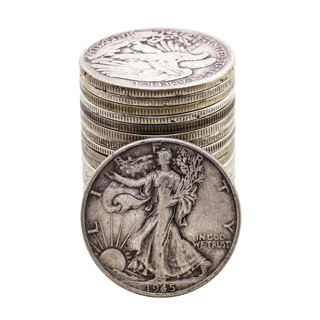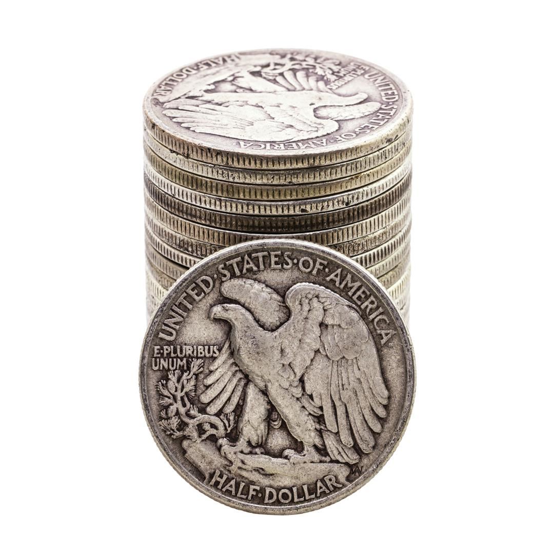 One Roll of (20) Assorted Date Walking Liberty Half Dollar Coins Circulated.