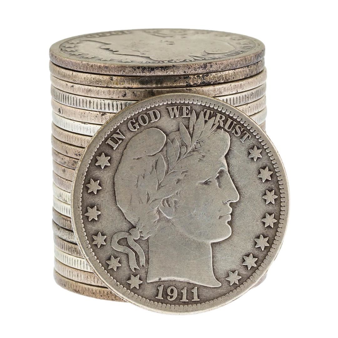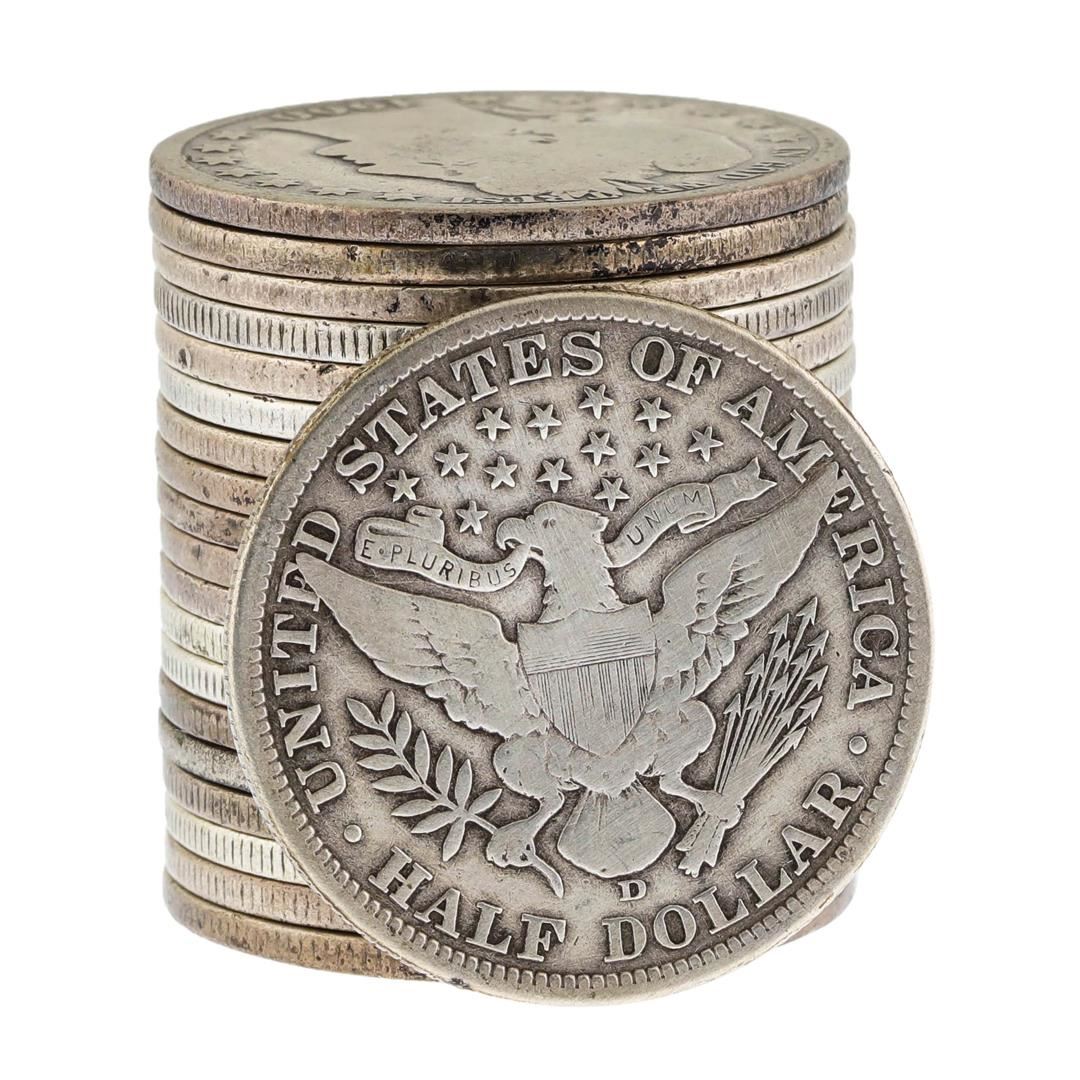 One Roll of (20) Barber Half Dollar Coins - Circulated.