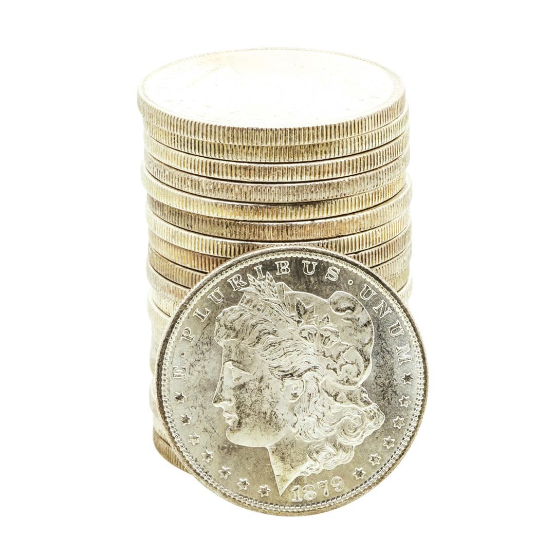 One Roll of (20) Brilliant Uncirculated 1879-S $1 Morgan Silver Dollar Coins.
