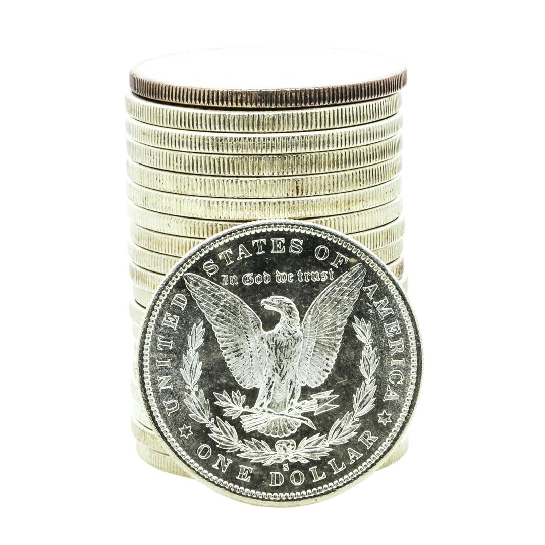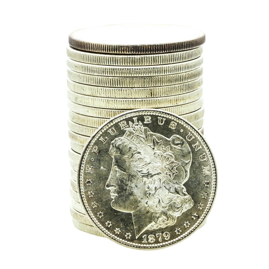 One Roll of (20) Brilliant Uncirculated 1879-S $1 Morgan Silver Dollar Coins.