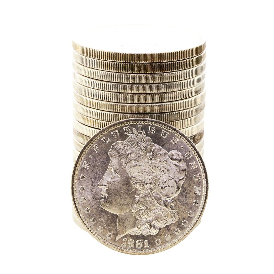 Roll of (20) Brilliant Uncirculated 1881-S $1 Morgan Silver Dollar Coins Nice Toning