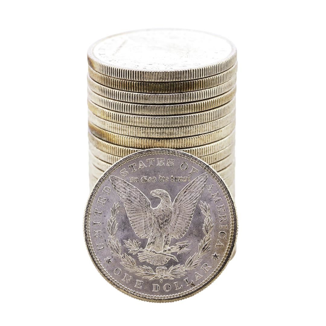 One Roll of (20) Brilliant Uncirculated 1881-S $1 Morgan Silver Dollar Coins Nice Toning.