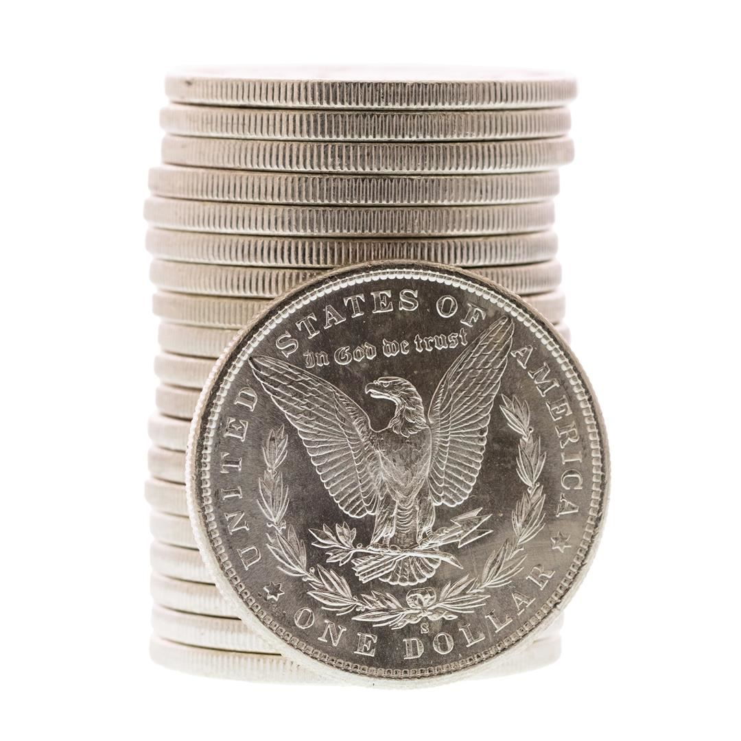 One Roll of (20) Brilliant Uncirculated 1881-S $1 Morgan Silver Dollar Coins.