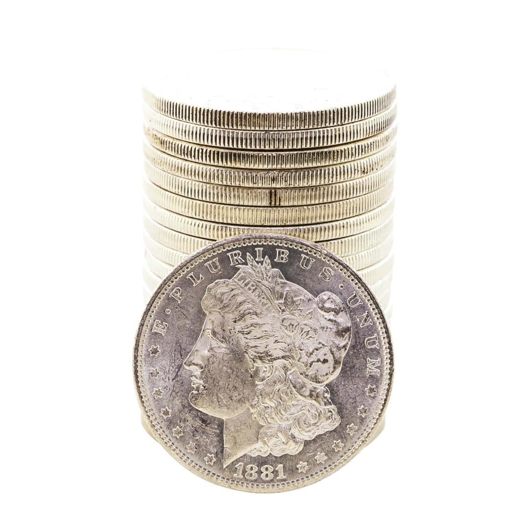 One Roll of (20) Brilliant Uncirculated 1881-S $1 Morgan Silver Dollar Coins.