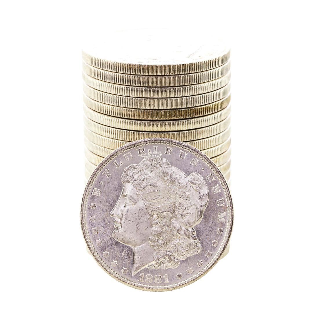 One Roll of (20) Brilliant Uncirculated 1881-S $1 Morgan Silver Dollar Coins.