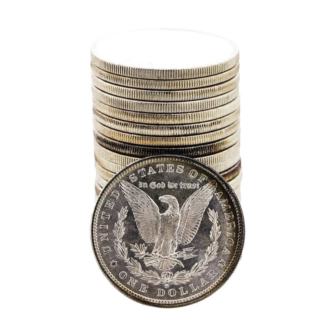 One Roll of (20) Brilliant Uncirculated 1881-S $1 Morgan Silver Dollar Coins.
