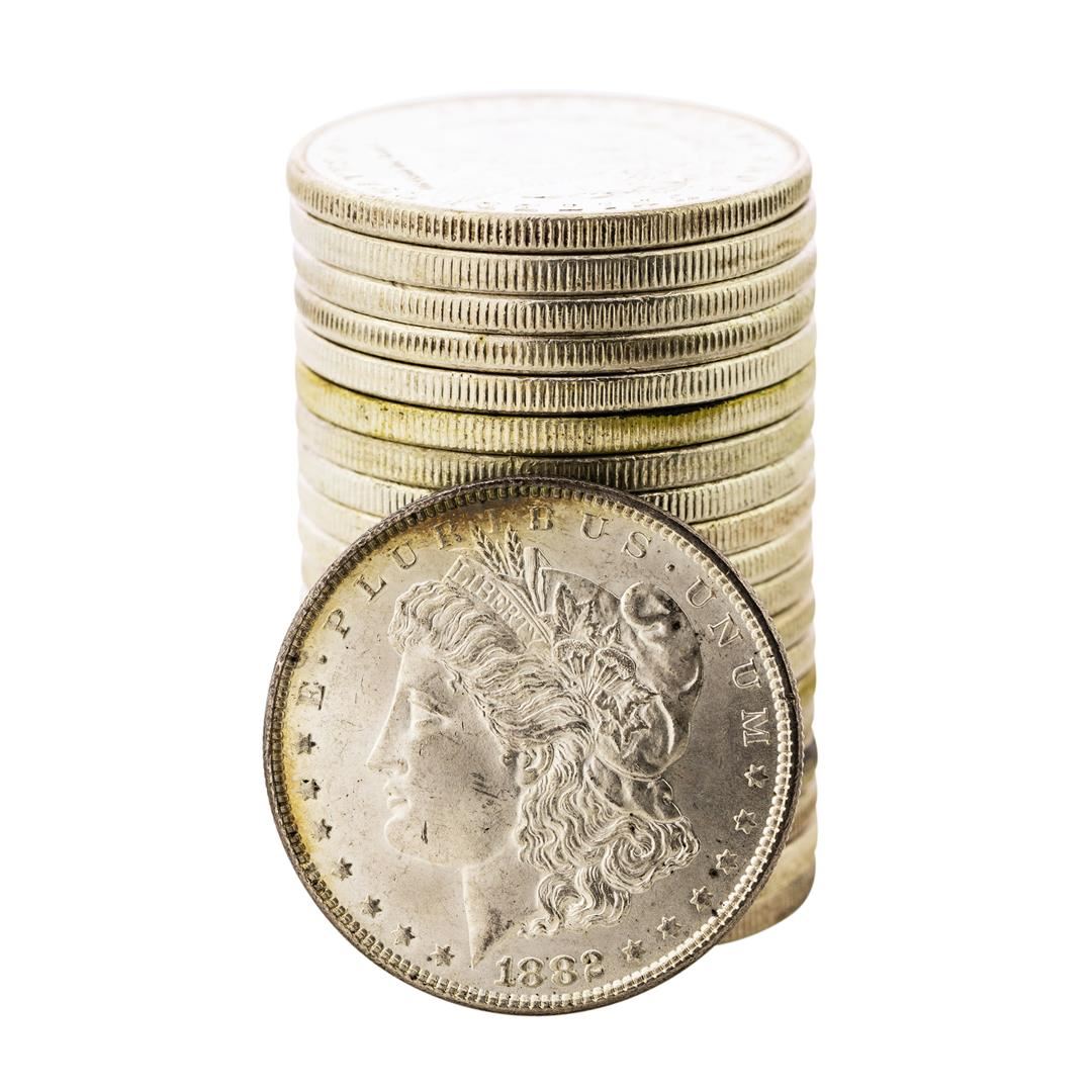 One Roll of (20) Brilliant Uncirculated 1882 $1 Morgan Silver Dollar Coins Amazing Toning.