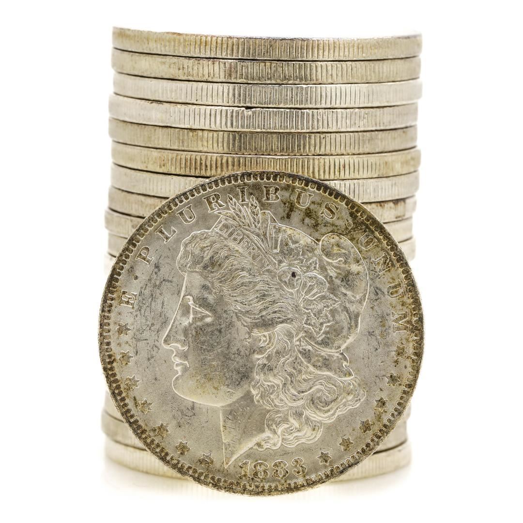 One Roll of (20) Brilliant Uncirculated 1883-O $1 Morgan Silver Dollar Coins.