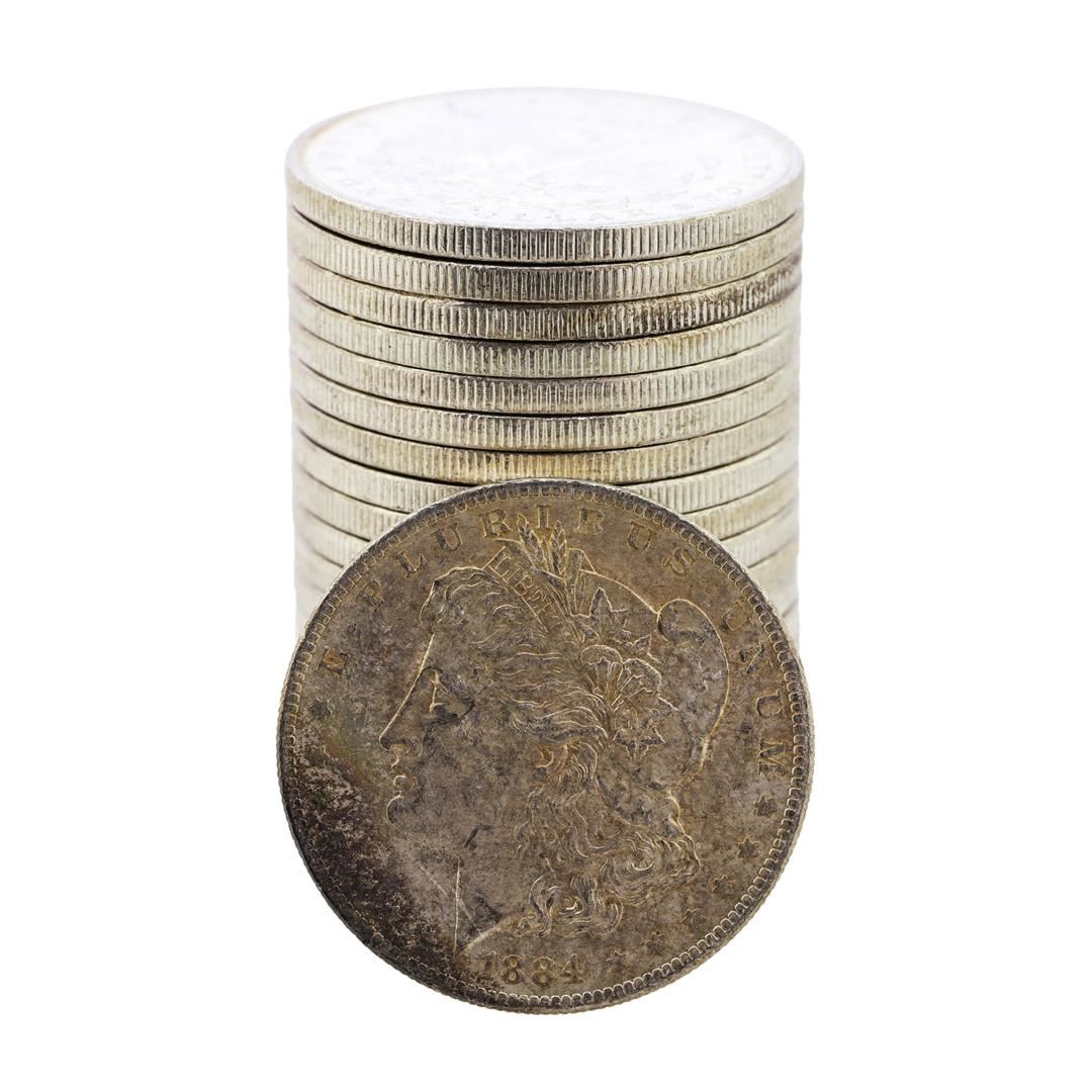 One Roll of (20) Brilliant Uncirculated 1884-O $1 Morgan Silver Dollar Coins.