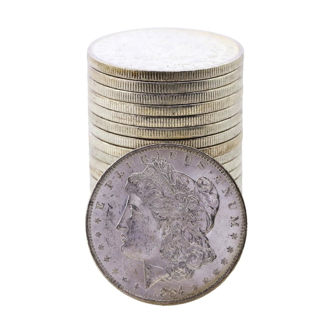 One Roll of (20) Brilliant Uncirculated 1884-O $1 Morgan Silver Dollar Coins.