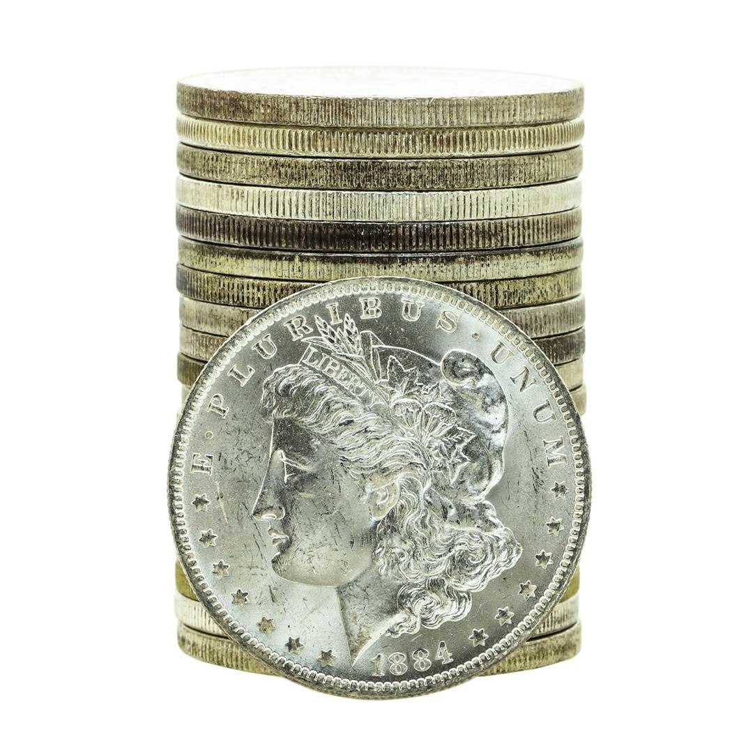 One Roll of (20) Brilliant Uncirculated 1884-O $1 Morgan Silver Dollar Coins.