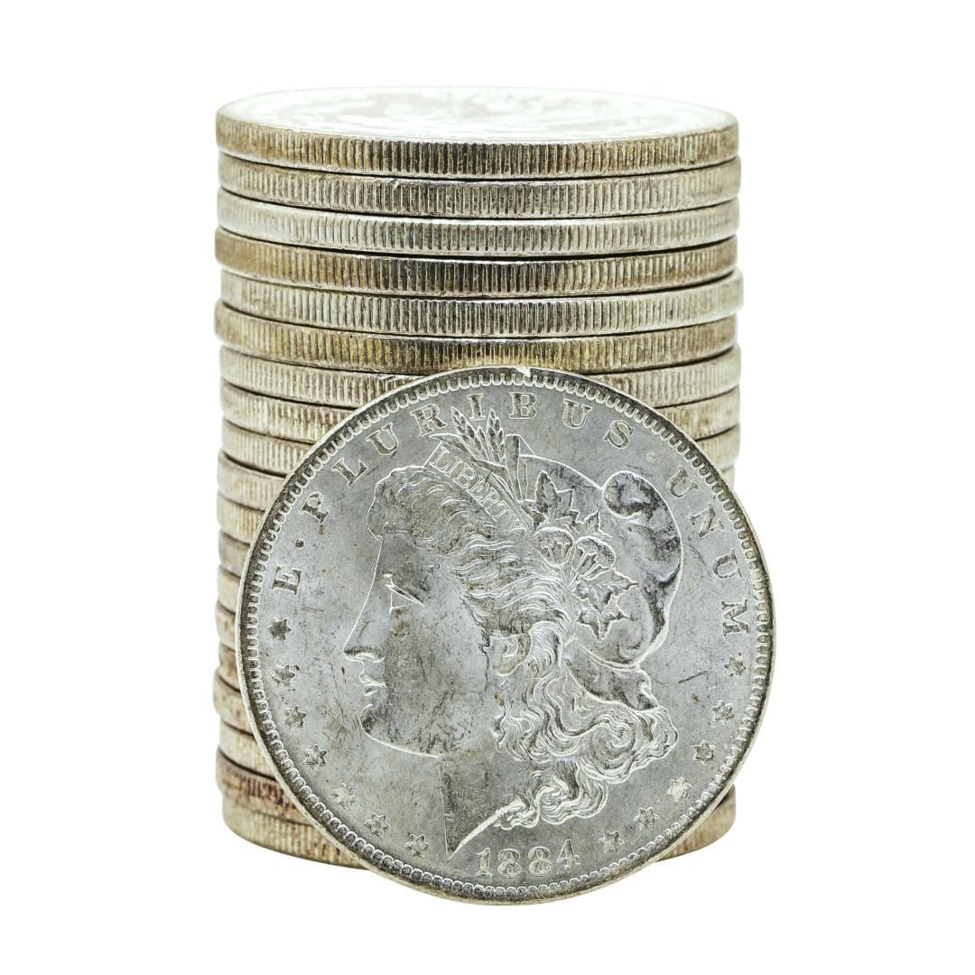One Roll of (20) Brilliant Uncirculated 1884-O $1 Morgan Silver Dollar Coins.