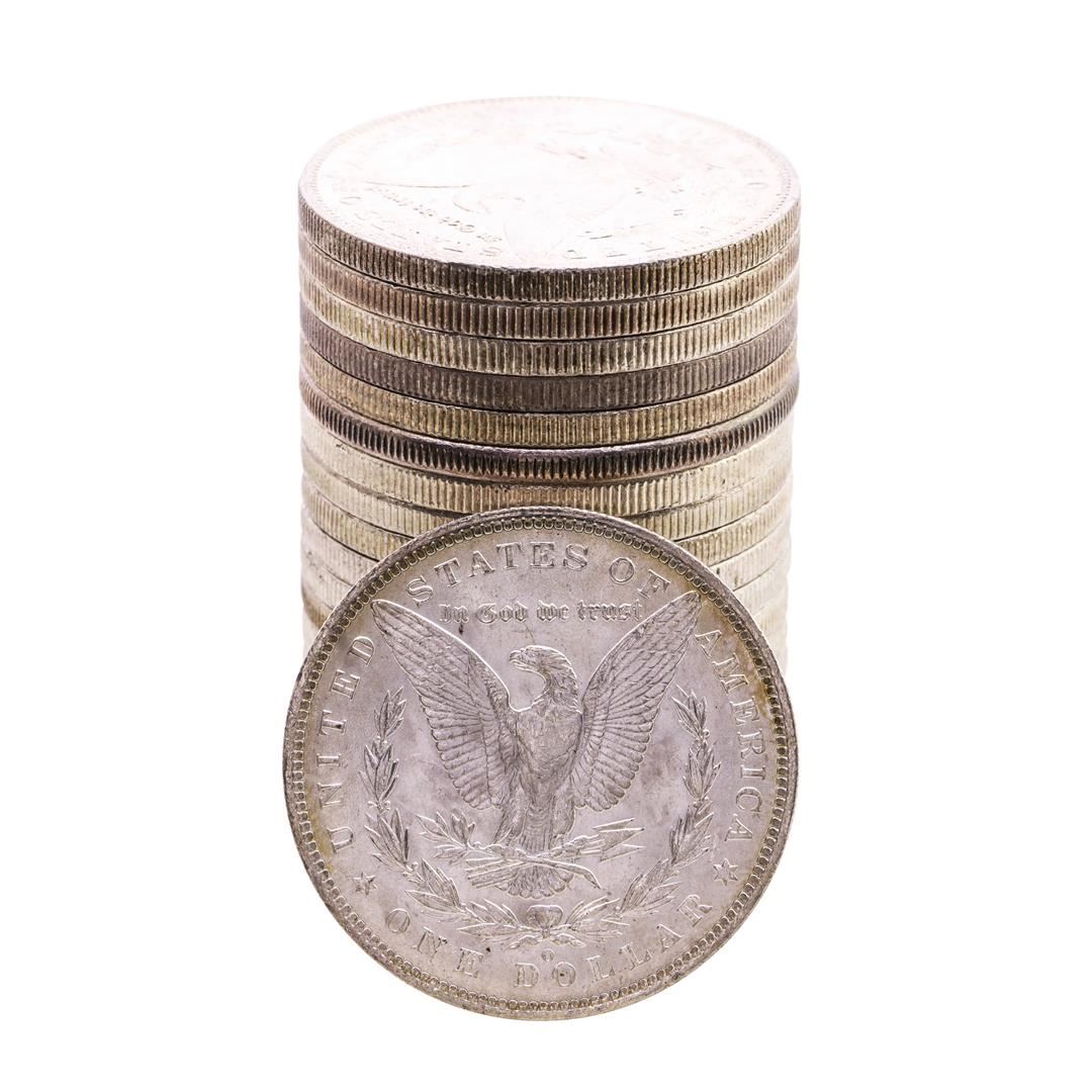 One Roll of (20) Brilliant Uncirculated 1885-O $1 Morgan Silver Dollar Coins.