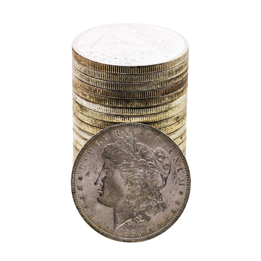 One Roll of (20) Brilliant Uncirculated 1885-O $1 Morgan Silver Dollar Coins.