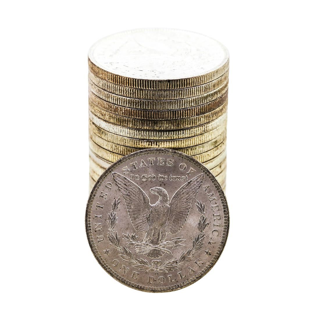 One Roll of (20) Brilliant Uncirculated 1885-O $1 Morgan Silver Dollar Coins.