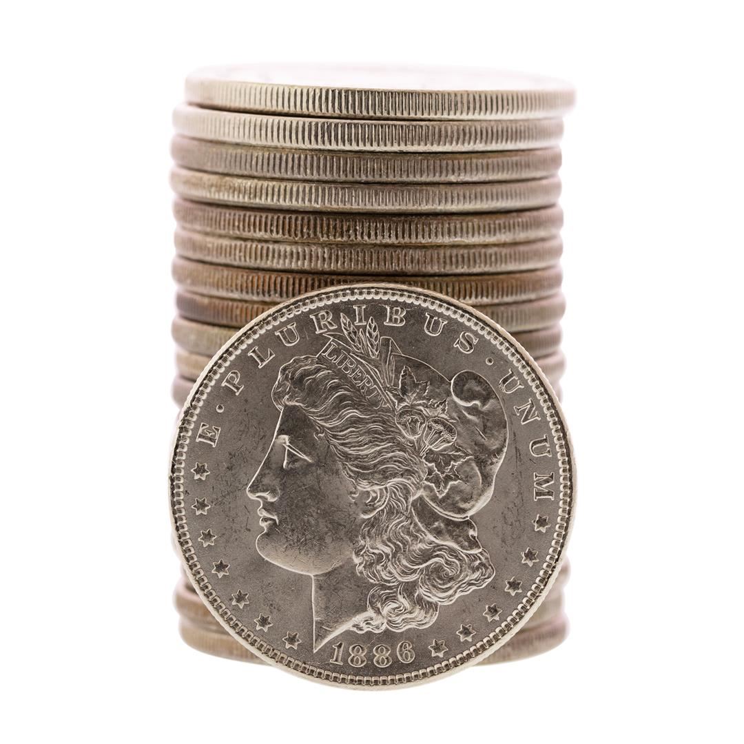 Roll of (20) Brilliant Uncirculated 1886 $1 Morgan Silver Dollar Coins