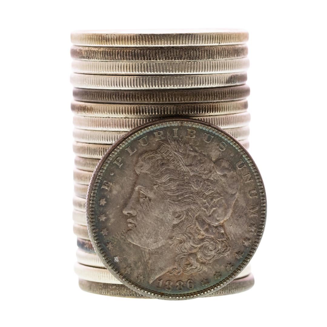 One Roll of (20) Brilliant Uncirculated 1886 $1 Morgan Silver Dollar Coins.