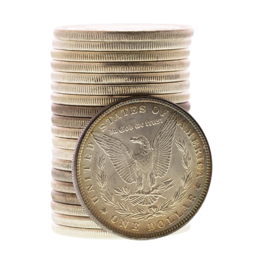 One Roll of (20) Brilliant Uncirculated 1886 $1 Morgan Silver Dollar Coins.